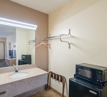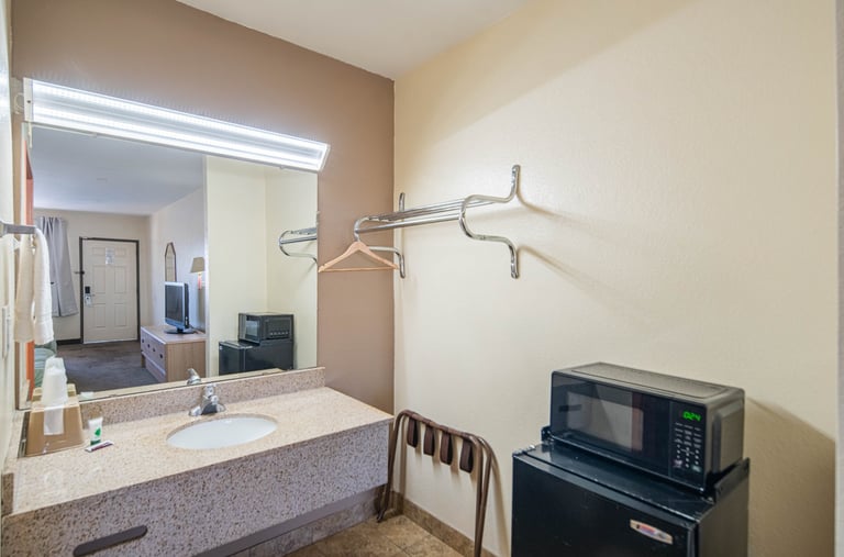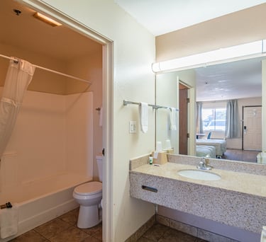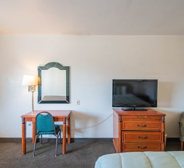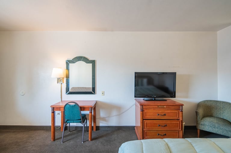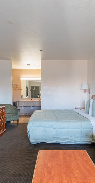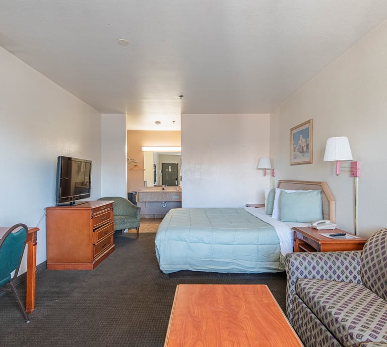 One spacious king bed, ideal for solo professionals or adventurers. Includes private bathroom, a table with chairs or comfortable couch for remote work, TV, air conditioning, refrigerator and more.